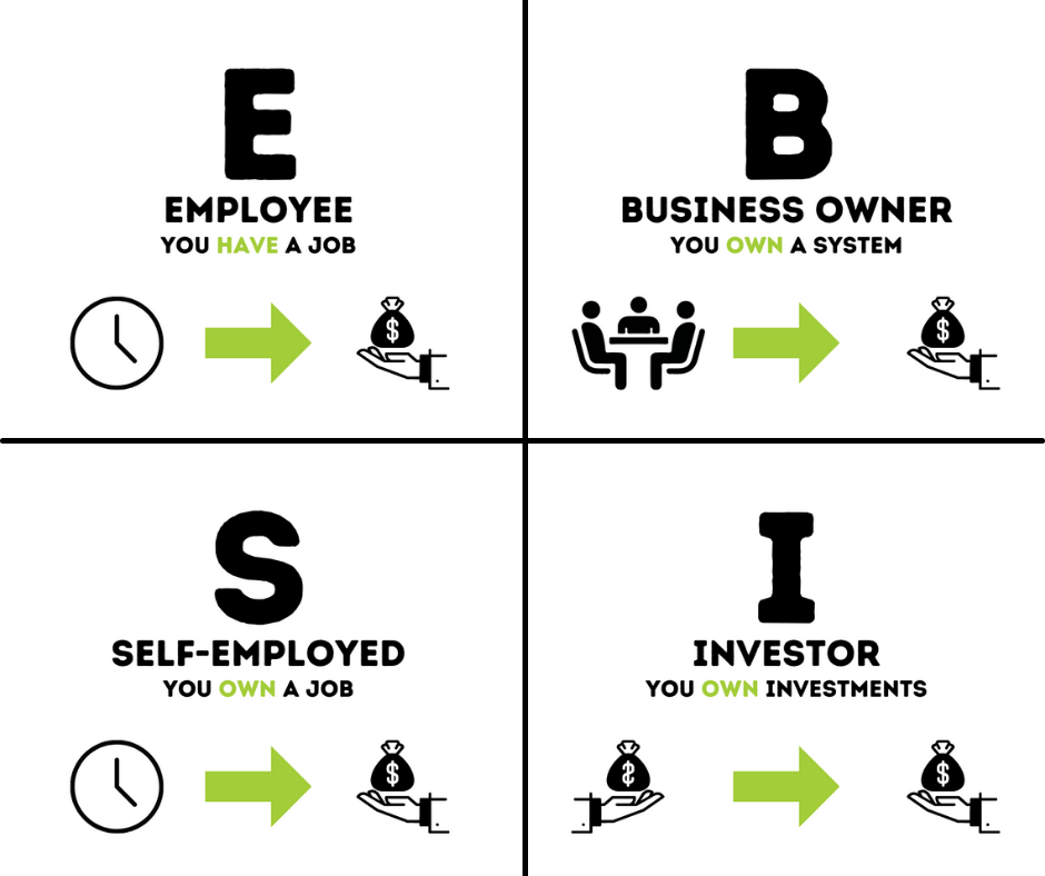 Most people spend their lives in E or S quadrants. The wealthy move to B and I quadrants where money works for them.